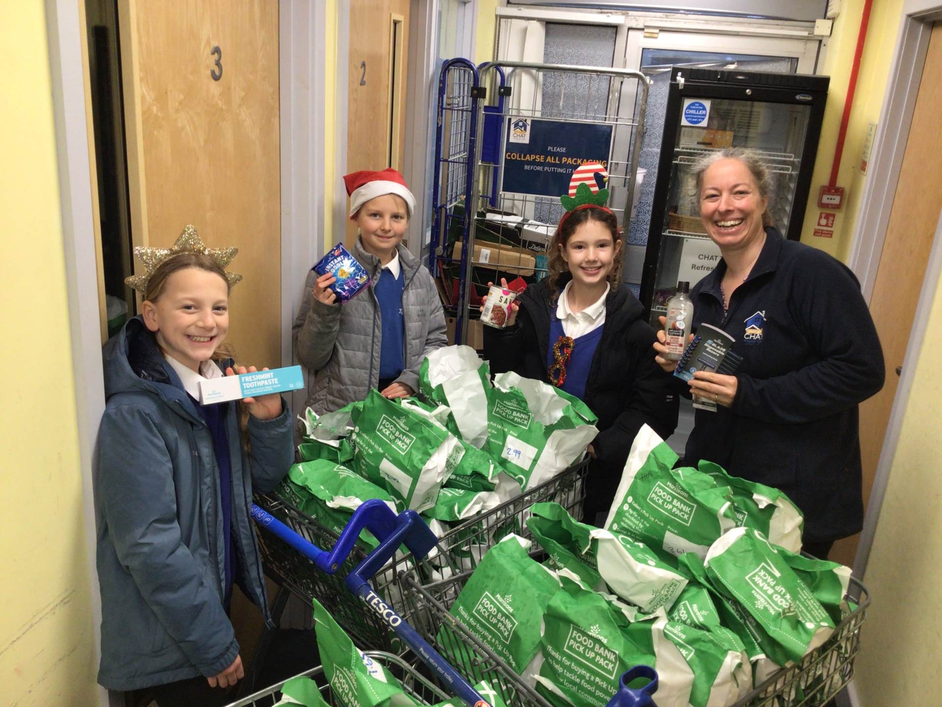 Throughout the school year, Amelie, Fleur, and Sophie have been collecting money to help support C.H.A.T – a local food bank in Tiverton. The children independently organised the creation and sale of their craft products to raise funds, and they made an astonishing £224.95. We then contacted Suzanne, Morrisons Tiverton's Community Champion, who arranged for C.H.A.T’s pre-made bags to be prepared so all the funds could purchase items that C.H.A.T themselves had highlighted as needed. It was wonderful to see the community coming together to help those in need over the Christmas period. The children were assisted by both Zara and Keira, who work at Morrisons – and they also presented the three with a gift to show their appreciation.