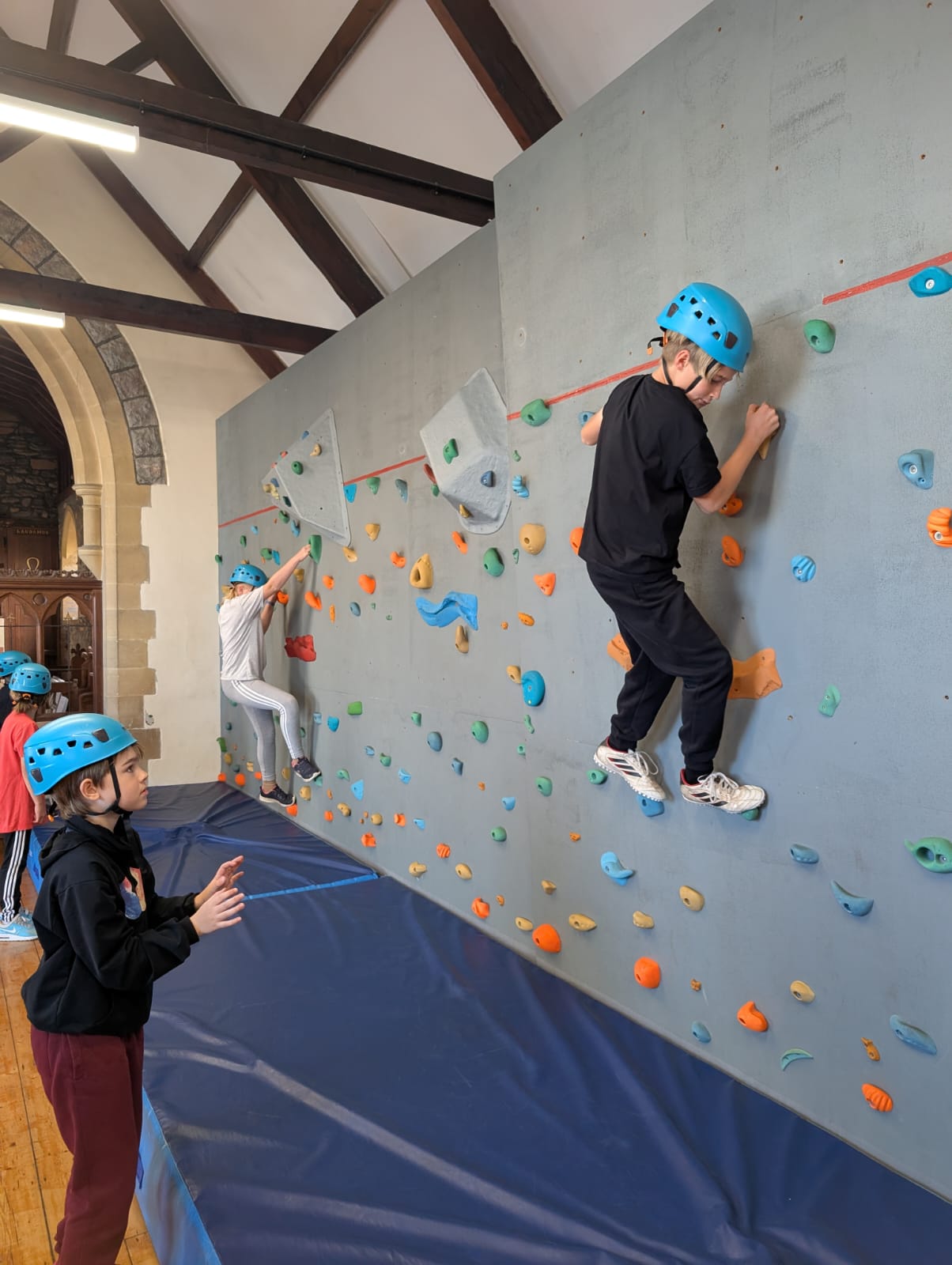 After a lunch of paninis, the children then split into their separate groups — with Mr Curnow's group tackling the seas again in kayaks, and Mr Snow's group going indoor climbing. Again, the children did us proud with their determination to improve at the task they had in front of them.