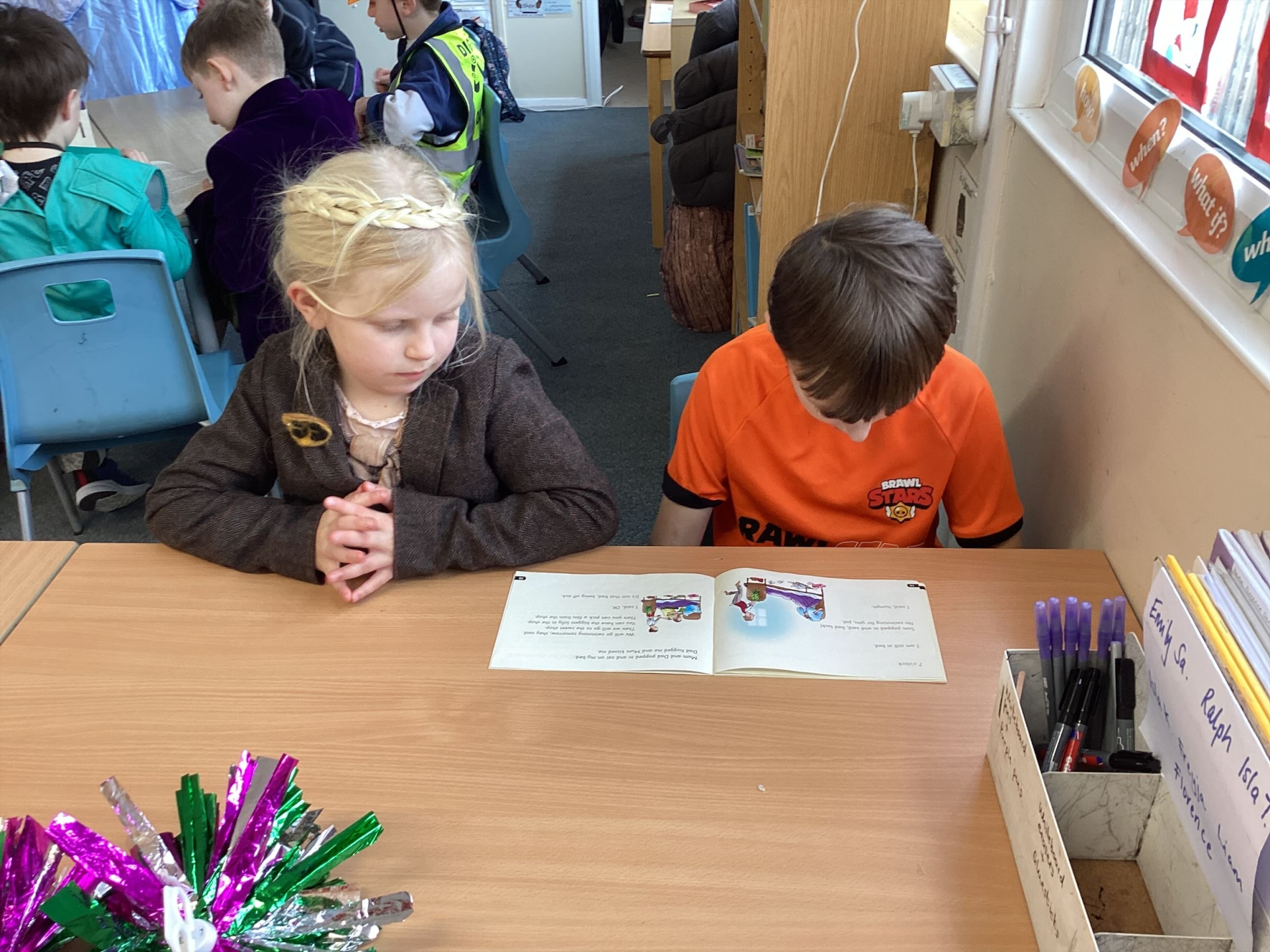 We had some amazing costumes on show and the buzz of books was evident all around the school. In classes the children: wrote their own poems; paraded their costumes on a catwalk; reviewed books they had read; completed some book illustrations based on famouns illustrators; and the older children went over to Early Years to read to the younger children of the school - a magical time.